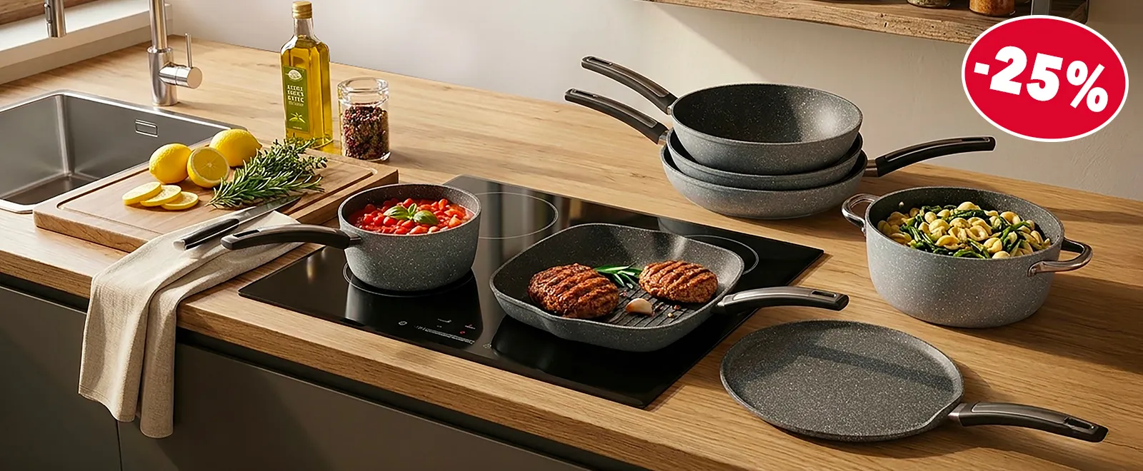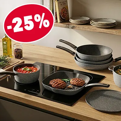 Approfitta dello sconto del 25% sul pentolame i-Premium Stone. Promozione valida solo per clienti fidelity fino alle 23:59 del 30/04/26.