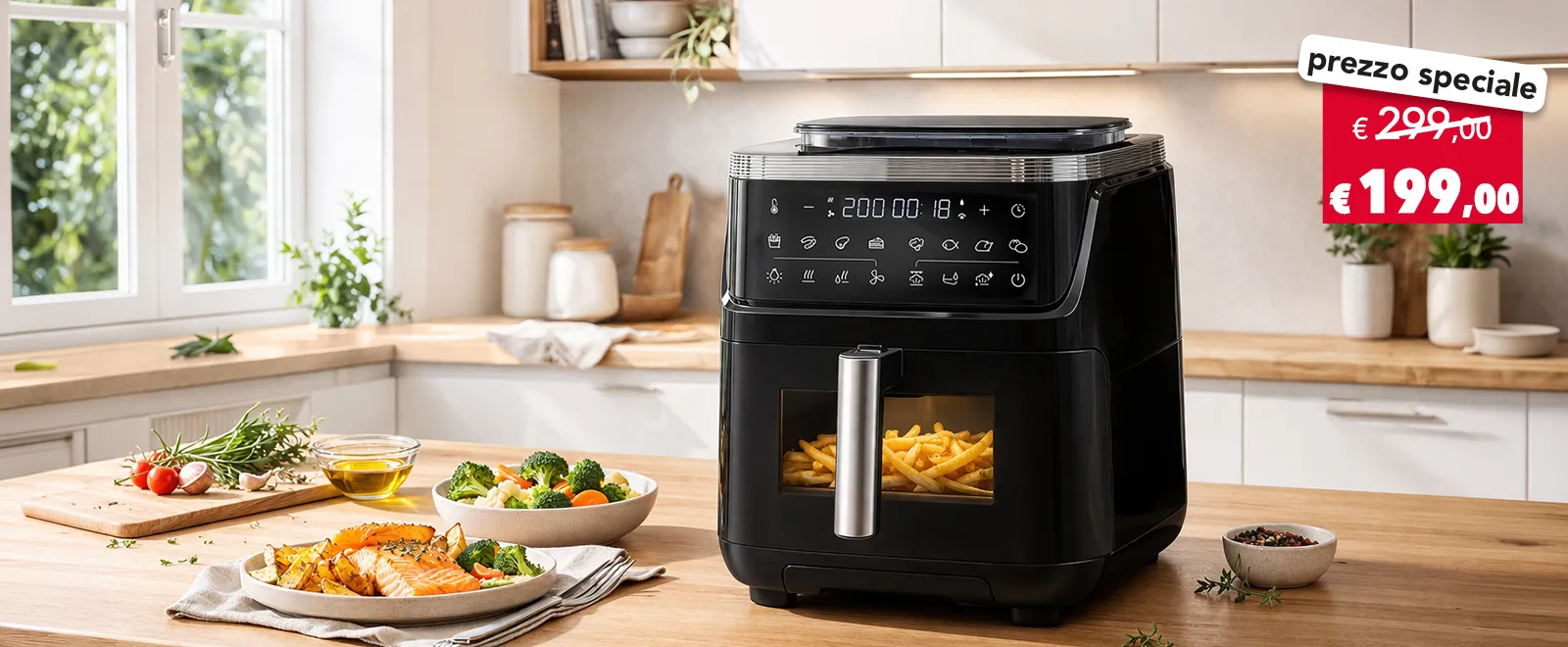 Friggitrice ad aria con funzione a vapore e autopulente, a soli 199 €! Promozione valida solo per fidelity fino alle 23:59 del 30/06/26.