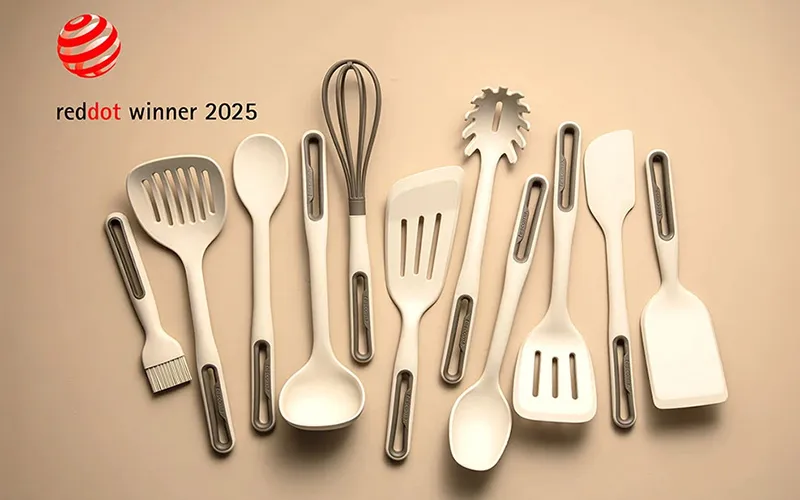 Una linea completa di utensili da cucina in silicone resistente al calore fino a 220 °C, dal design moderno e “furbo”, grazie agli angoli arrotondati che facilitano l’uso degli utensili nei recipienti di cottura e nelle ciotole, senza trascurarne gli angoli e il fondo. Essendo prodotti in silicone (tranne la frusta, che invece ha il terminale in nylon e resiste al calore fino a 210 °C), gli utensili Silicon Prime sono adatti a tutti i tipi di pentole, anche a quelle con rivestimento antiaderente o in ceramica, perché sono delicati sulle superfici e non le danneggiano o graffiano. Tutti gli utensili presentano un’apertura longitudinale lungo le impugnature: tale apertura ne rende confortevole l’uso e permette anche di appenderli ai ganci della cucina. Belli, pratici e intelligenti, gli utensili Silicon Prime hanno meritato il prestigioso premio Red Dot Design Award 2025.