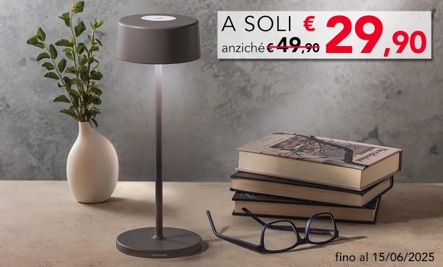 La lampada da tavolo senza fili è scontata a soli 29,90 € anziché 49,90 €. Approfitta subito dell'offerta! La promozione riservata ai clienti fidelity valida fino alle 23:59 del 15/06/2025.