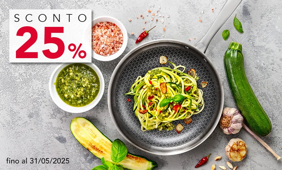 Approfitta dello sconto del 25% su tutta la linea SteelCraft. Robuste pentole in acciaio con rivestimento antiaderente e griglia a rilievo in acciaio inox per una cottura intensiva e omogenea. Promozione riservata ai clienti fidelity valida dal 01/11/2025 fino alle 23:59 del 27/11/2025.