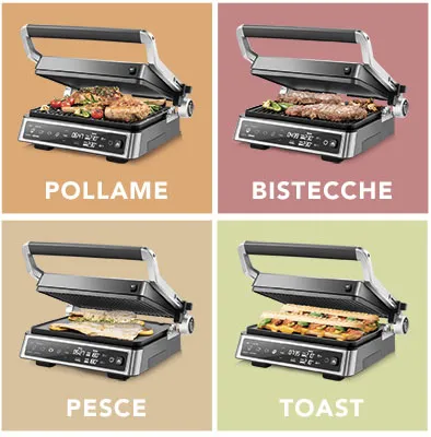 La piastra elettrica digitale con touch screen è un dispositivo innovativo e facile da usare per preparare i tuoi piatti preferiti con precisione. Il touch screen è intuitivo, per una gestione facile e veloce dei programmi di cottura.