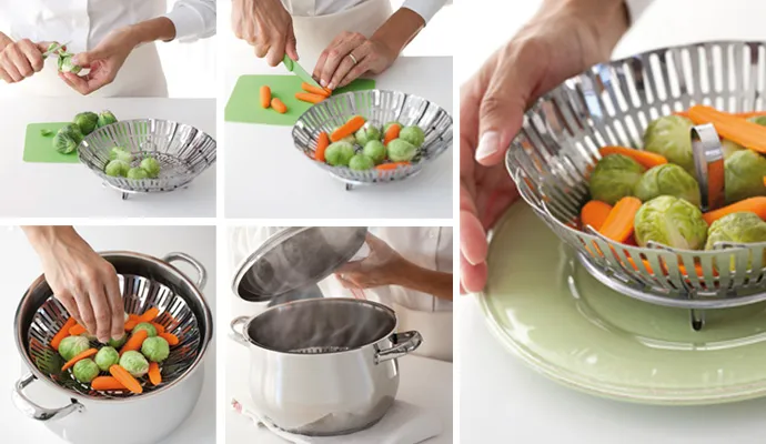 puoi optare per il tradizionale cestello, da quello in acciaio a quello in plastica di alta qualità, o sperimentare una cottura a vapore alternativa, ma di altrettanto valido risultato, utilizzando il